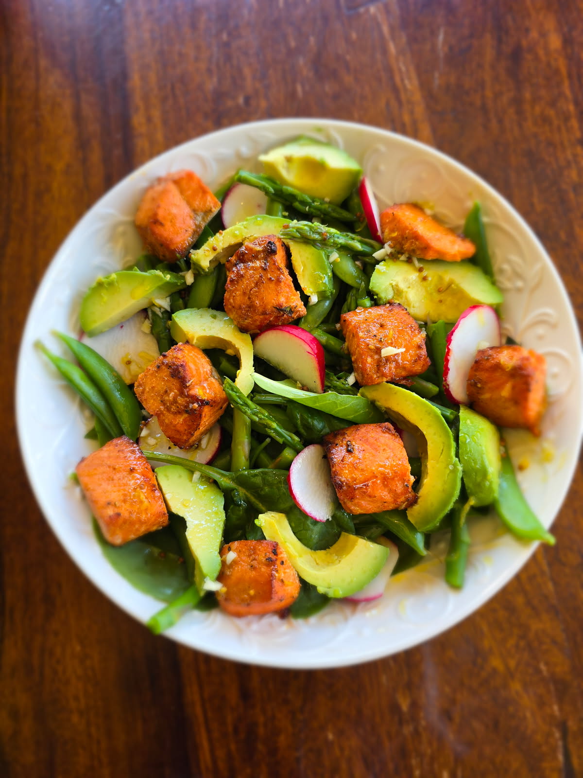Spring Salmon Salad with Lemon-Herb Vinaigrette & Toasted Pistachios